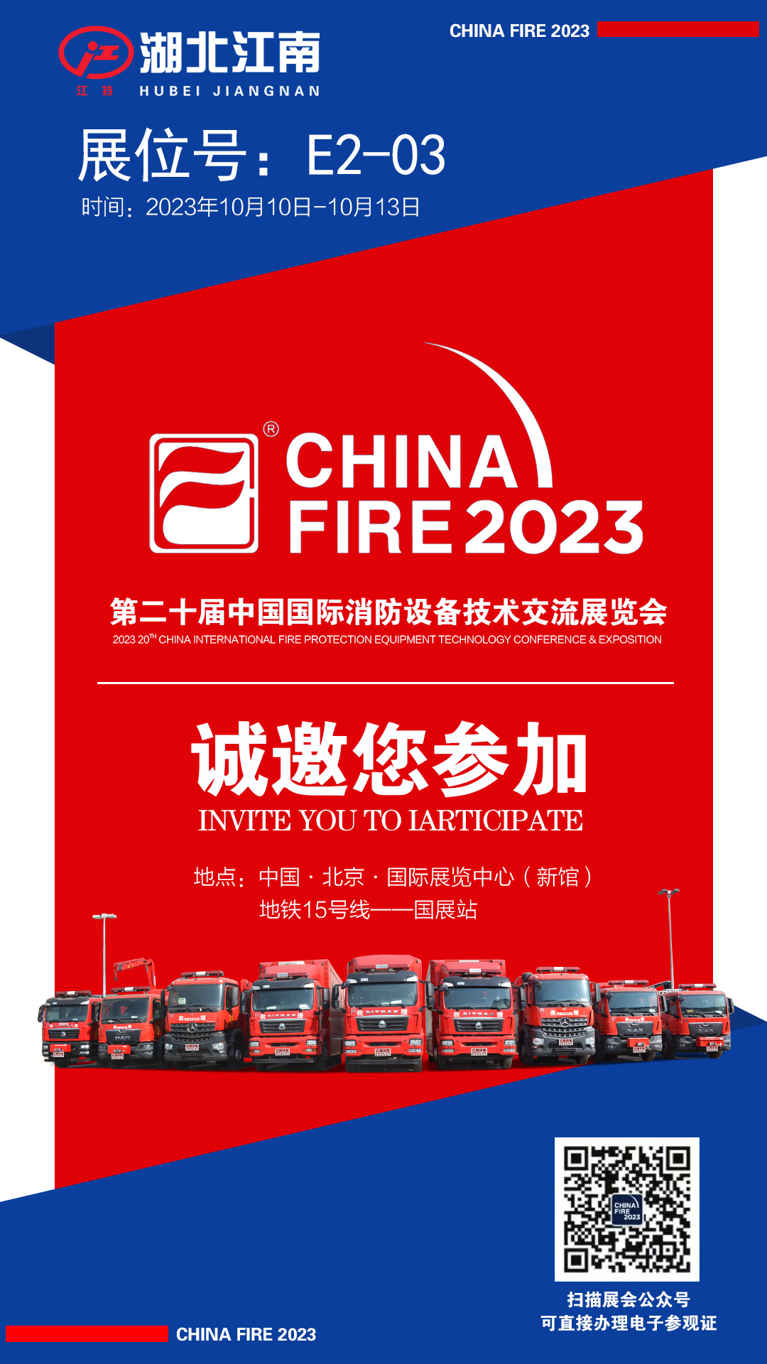 10月10日--13日,第二十屆中(zhōng)國(guó)國(guó)際消防設備技(jì )術交流展覽會在北京市順義區(qū)中(zhōng)國(guó)國(guó)際展覽中(zhōng)心新(xīn)館舉辦(bàn),湖(hú)北江南專用(yòng)特種汽車(chē)有(yǒu)限公(gōng)司展位号E2-03,熱忱歡迎新(xīn)老朋友前來參觀、指導!